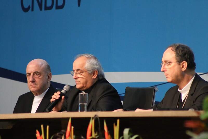 Na cerimônia de encerramento, a mesa foi composta pelo Cardeal Sergio da Rocha, presidente da CNBB, acompanhada por Dom Murilo Krieger, vice-presidente do organismo, pelo Núncio Apostólico, dom Giovanni d’Aniello, e pelo coordenador dos trabalhos desses dois últimos dias, Dom João Justino, arcebispo-coadjutor de Montes Claros (MG).