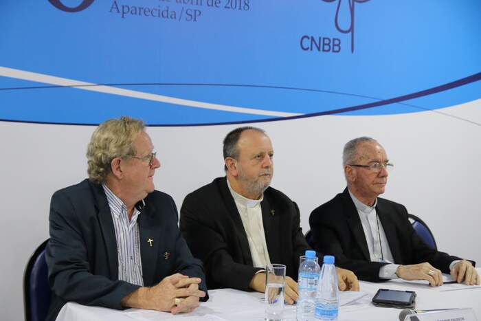A coletiva de imprensa desta quarta-feira, 18 de abril, durante a 56ª Assembleia Geral da CNBB abordou um conjunto de temas sociais da Igreja. Participaram desta coletiva o presidente da Comissão Especial para a Amazônia, Cardeal Dom Claudio Hummes, o presidente da Comissão Episcopal Pastoral para a Ação Social Transformadora, Dom Guilherme Werlang e o Presidente do Conselho Indigenista Missionário, Dom Roque Paloschi.