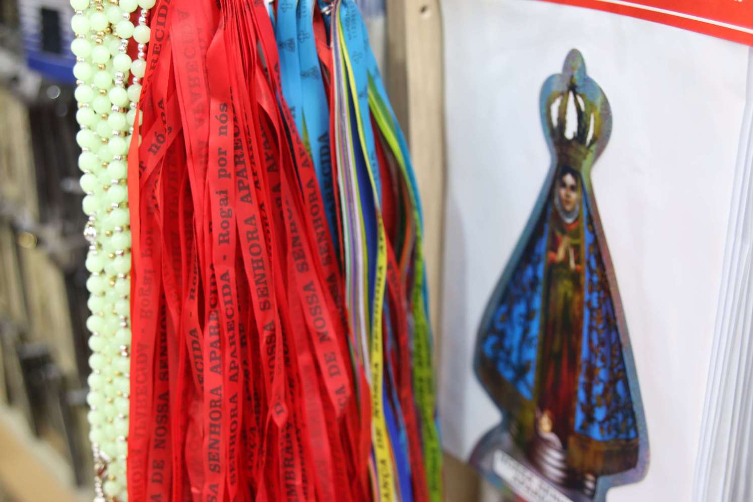 Segundo ele, os artigos mais vendidos são as imagens de Nossa Senhora, santos, chaveiros e terços. “Todos que visitam o Centro de Apoio ao Romeiro querem levar uma lembrancinha para casa”.