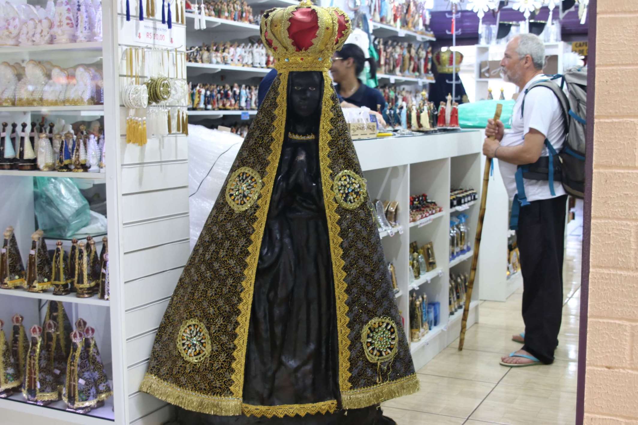 Ao percorrer um dos corredores, uma imagem de Nossa Senhora Aparecida de cerca de dois metros chama a atenção dos visitantes. De acordo com o comerciante João Vitor Barbosa, os romeiros tiram fotos com a imagem e deixam cartas de promessas dentro da coroa.