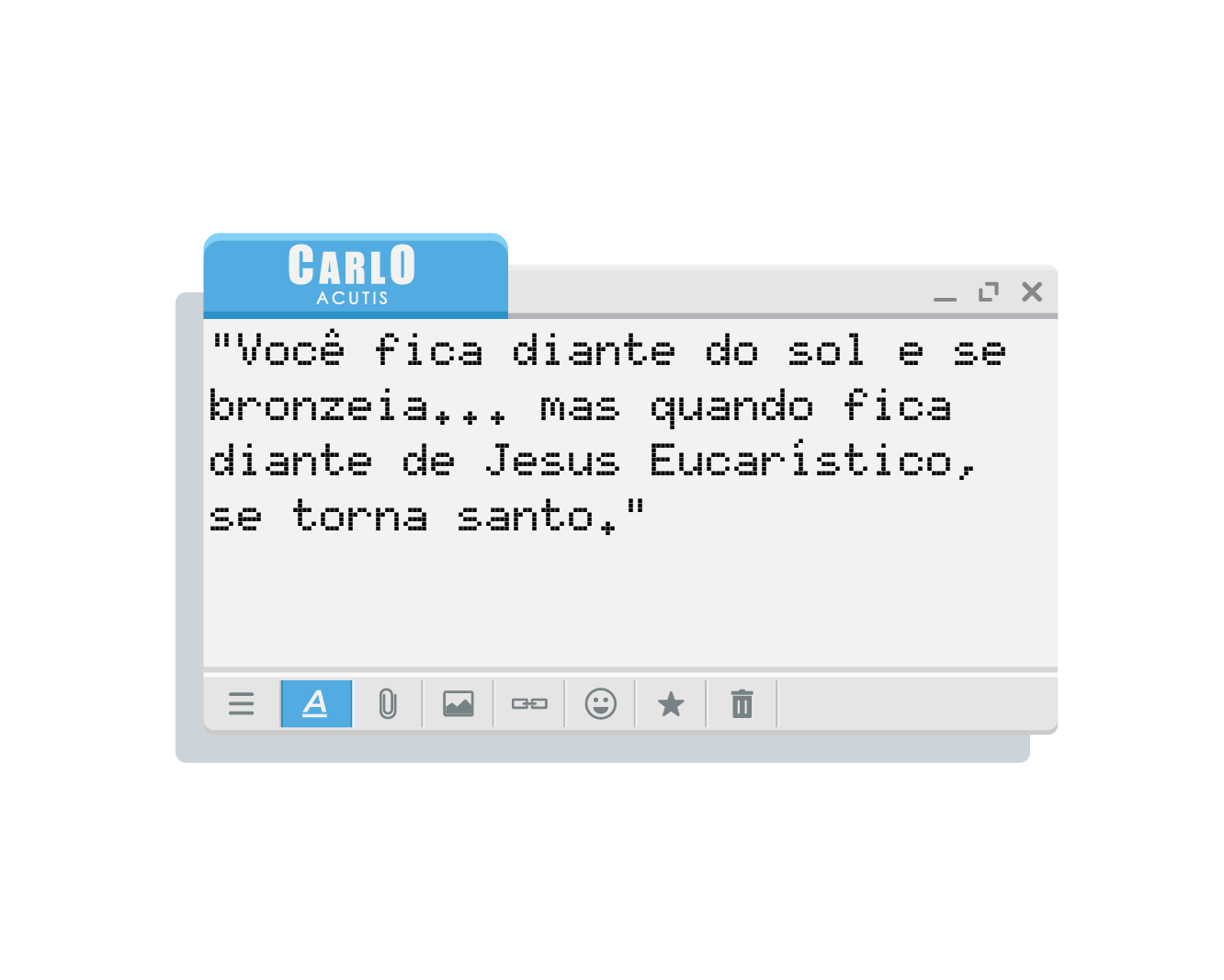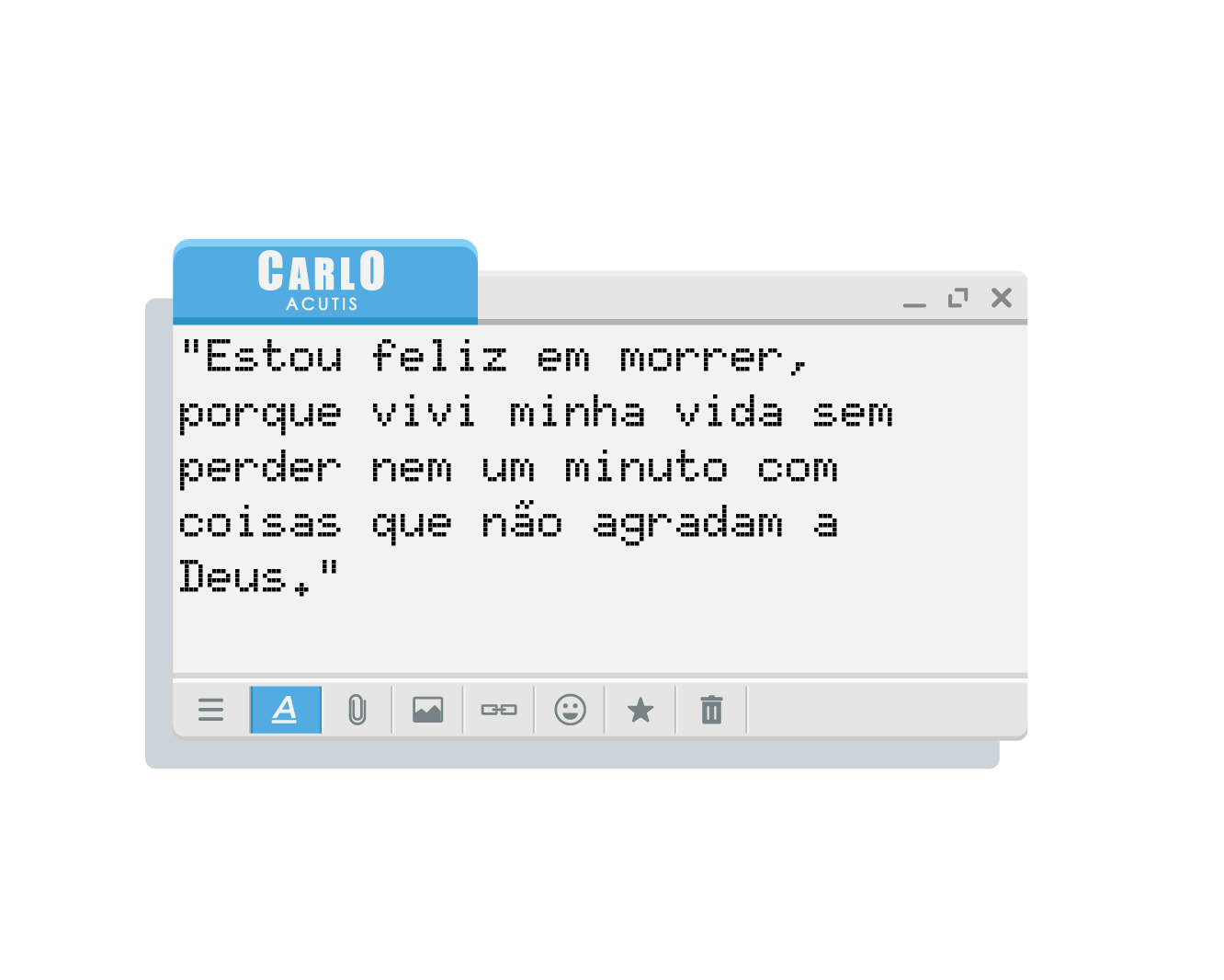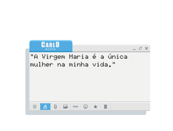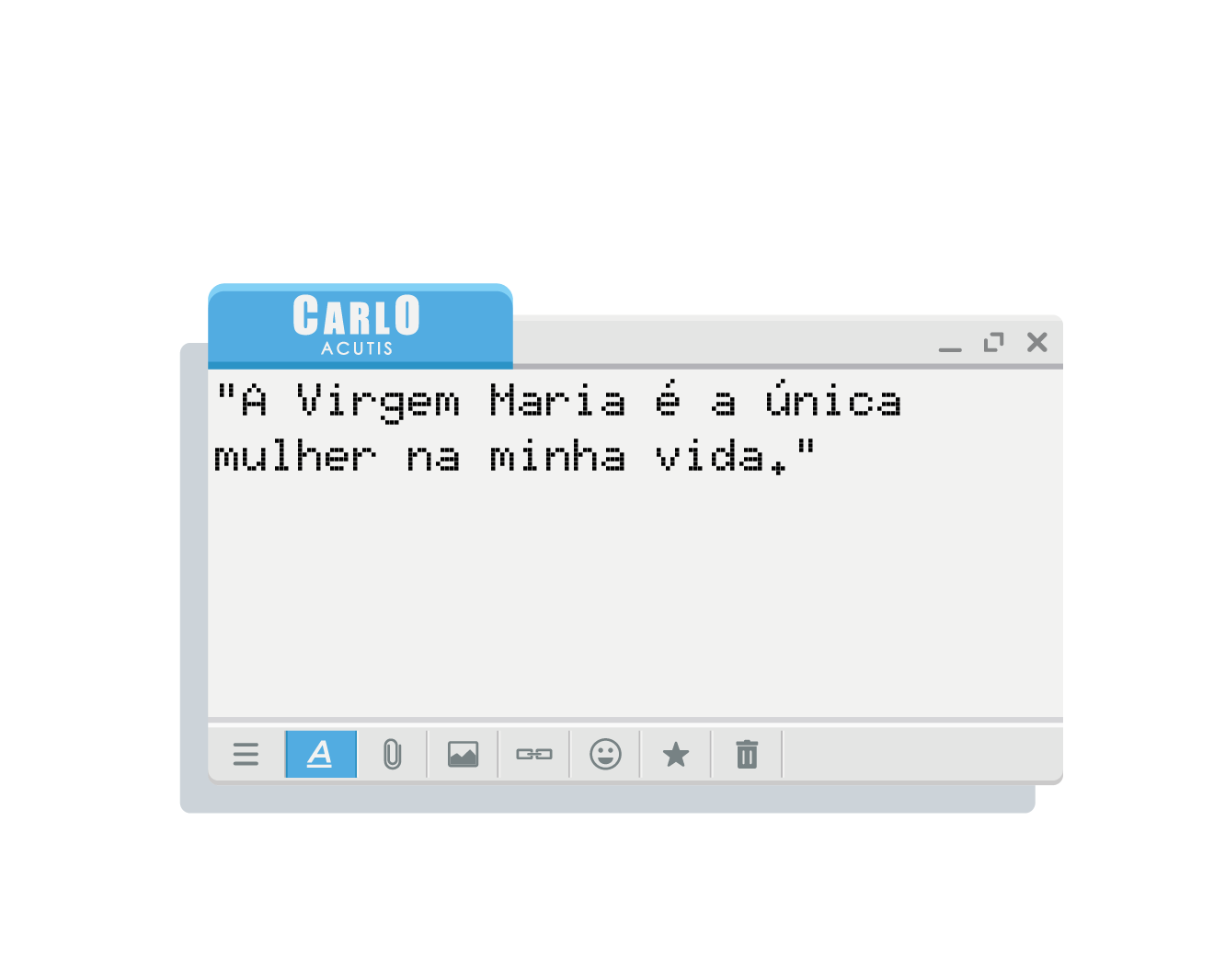 Além da sua espiritualidade, Carlo era um gênio da tecnologia! Ele aprendeu sozinho a programar e criar sites. Aos 11 anos, uniu essa paixão com sua fé e criou a exposição virtual “Os Milagres Eucarísticos no Mundo”, reunindo informações sobre milagres eucarísticos reconhecidos pela Igreja em mais de 20 países.