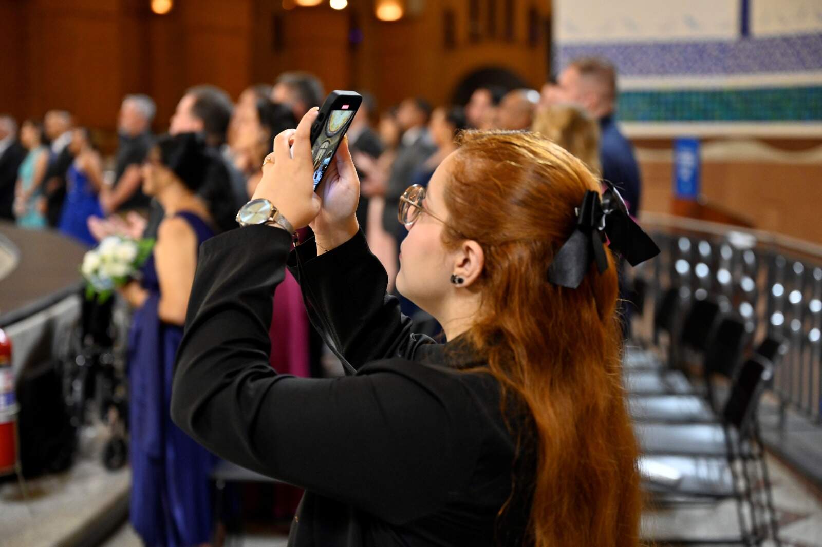 A primeira dica é ativar as grades no celular, aquelas linhas que ajudam a compor a imagem. Se estiver gravando na vertical, mantenha a pessoa centralizada nos quadradinhos do meio. No horizontal, posicione-a em qualquer linha lateral, esquerda ou direita, deixando o vídeo mais interessante para quem assiste.