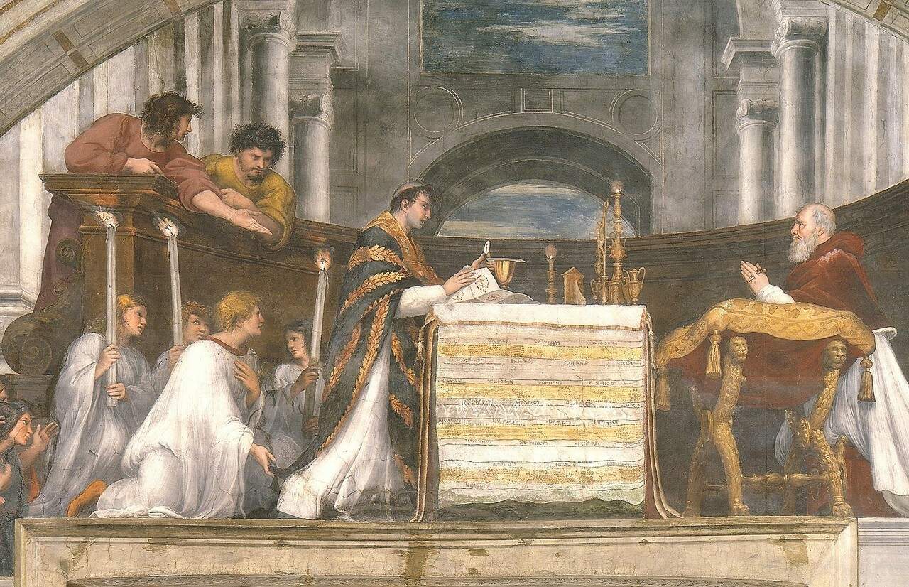 Em 1263, o Padre Pedro de Praga duvidava sobre a presença de Cristo na Eucaristia e realizou uma peregrinação a Roma para rogar sobre o túmulo de São Pedro uma graça de fé. Ao celebrar a Missa na cripta de Santa Cristina, a hóstia sangrou, manchando o corporal (tecido em forma quadrangular sobre o qual se coloca o cálice com o vinho e a patena com o pão.) com o precioso Sangue.