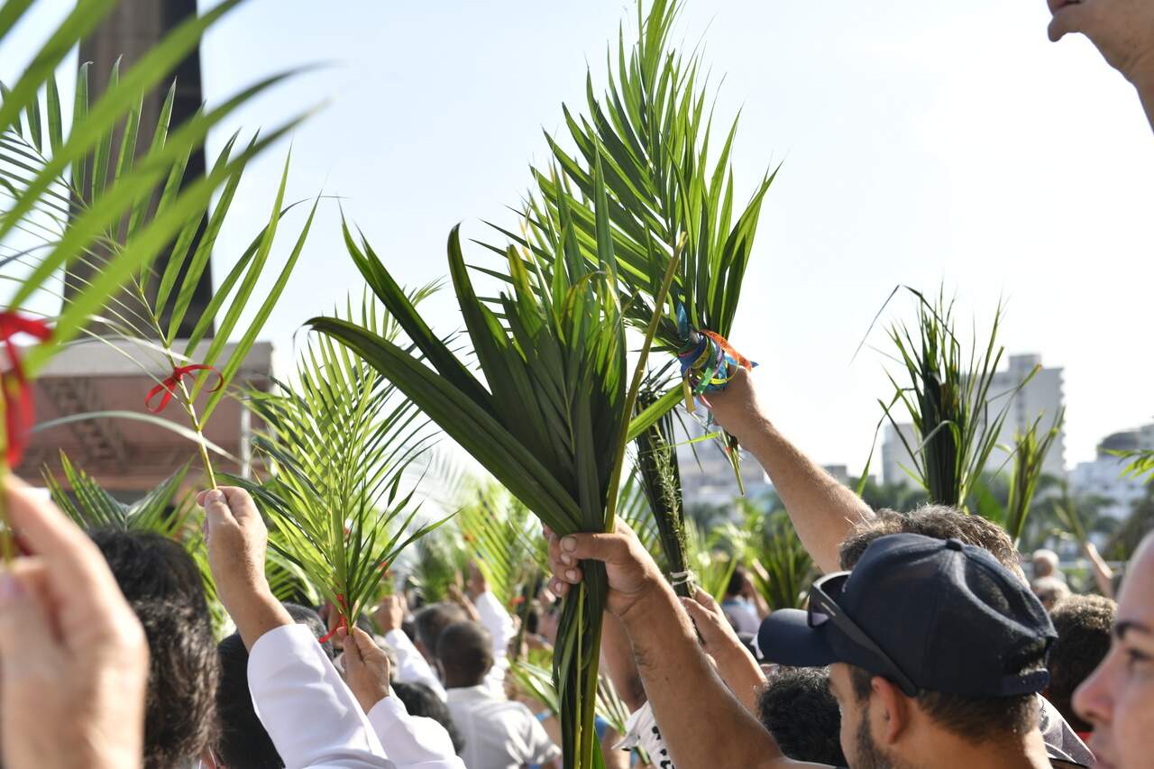 Levamos os nossos ramos para serem abençoados e, com cantos e festa, saímos em procissão até a Igreja para celebrarmos a Missa Solene da Paixão do Senhor!