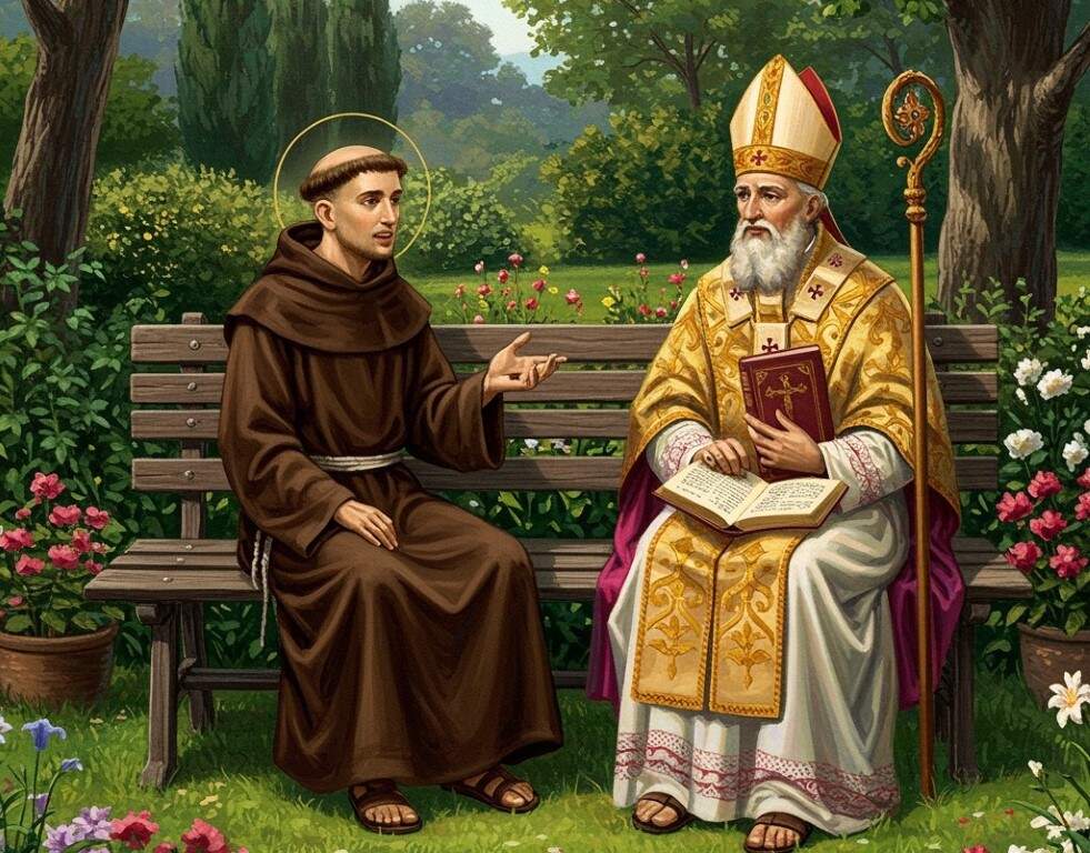 Francisco, com sua simplicidade e amor pela criação, fala sobre a alegria de servir a Deus no cuidado da criação, enquanto Agostinho reflete sobre a graça divina presente em cada detalhe do que foi feito e pensado por Deus.