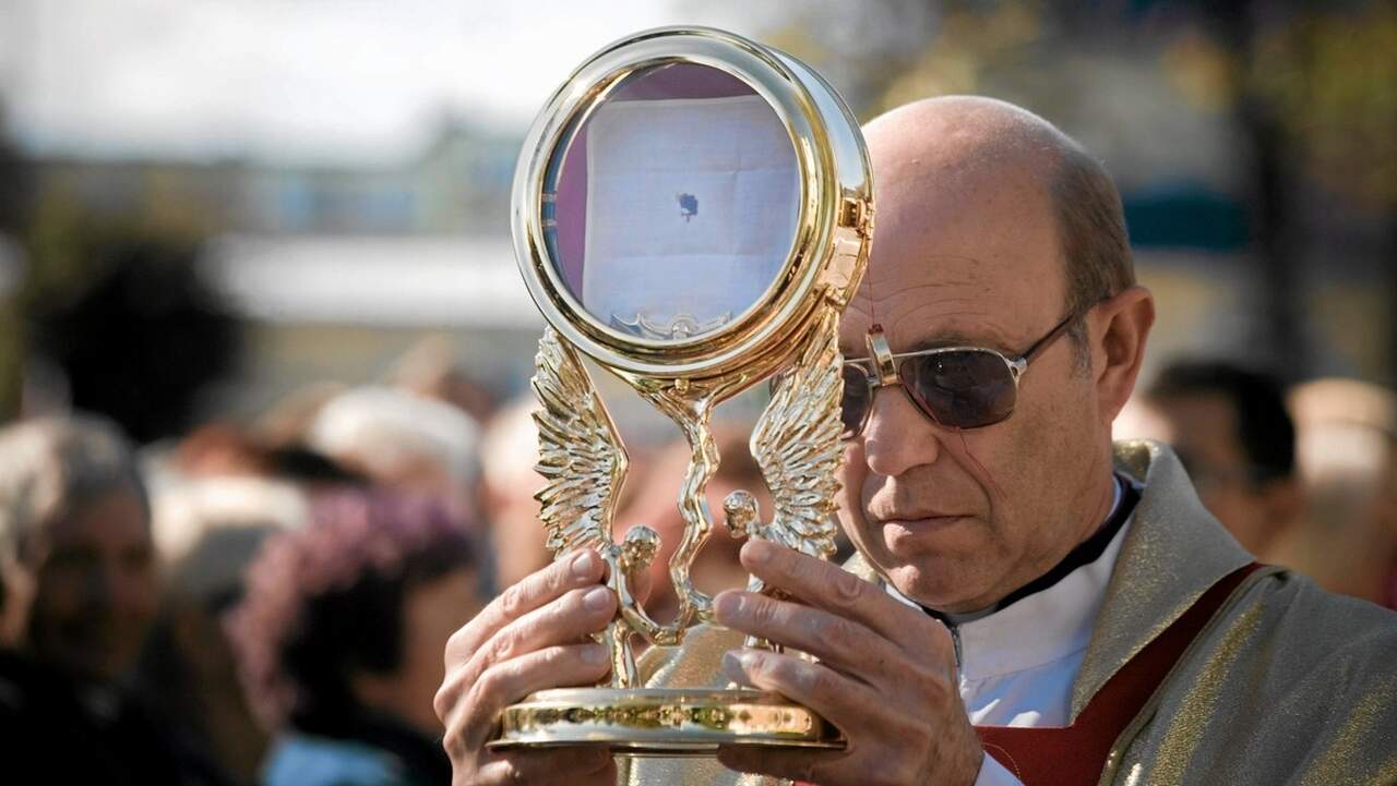 “No Natal de 2013, a hóstia consagrada caiu no chão durante a distribuição da Sagrada Comunhão e depois esta hóstia foi colocada na água. Após 10 dias, descobriu-se que havia uma mancha vermelha nela. Por isso, o bispo solicitou uma investigação científica e descobriu-se que, em primeiro lugar, os cientistas não sabiam explicar o motivo da mancha vermelha”, explicou.