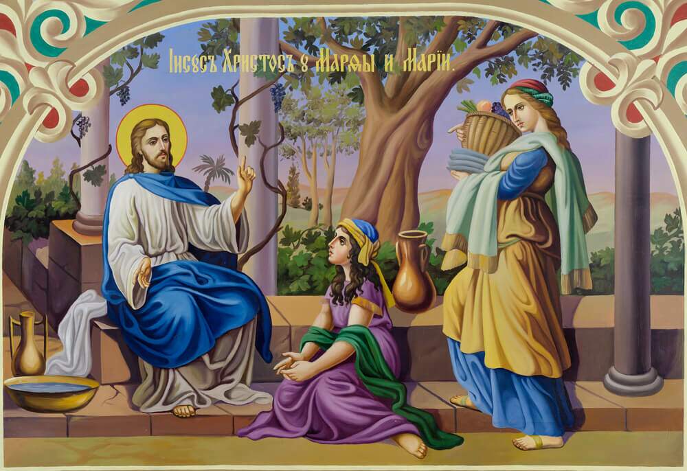 Marta e Maria, irmãs de Lázaro, são parentes e discípulas fiéis do Senhor, que habitavam em Betânia. Ao ler as palavras do evangelho, vemos que Marta se ocupava dos afazeres e Maria, sentada aos pés de Jesus, se dedicava a escutá-lo.