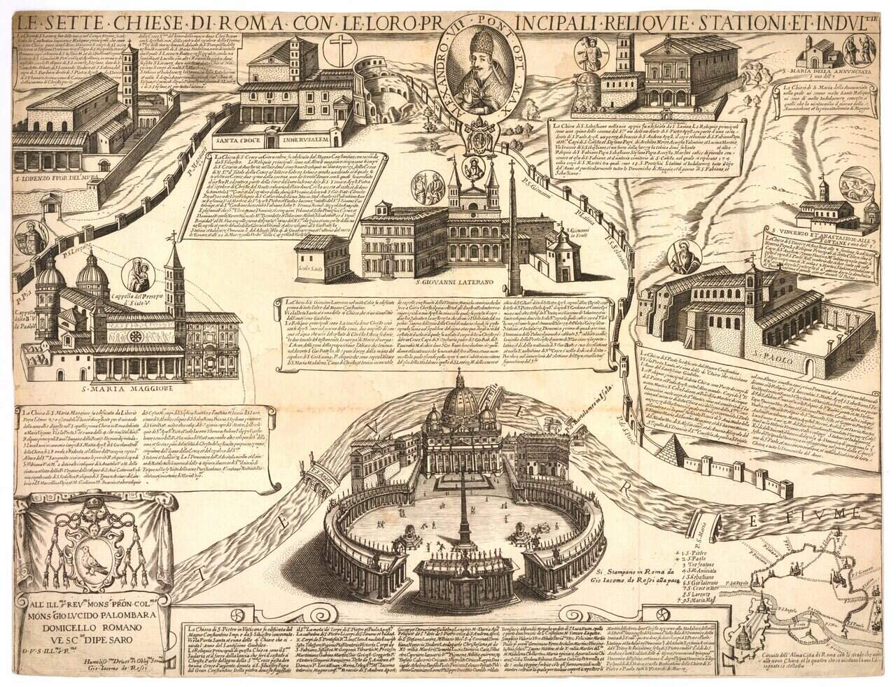 A maior basílica papal, tendo como os seus 218 metros de comprimento, 136 metros de altura até a cúpula e uma área construída de 23 mil metros quadrados. A basílica é considerada uma obra arquitetônica de grande importância pela grandiosidade de sua fachada, pela qualidade do trabalho artístico realizado pelos maiores gênios da arte mundial.