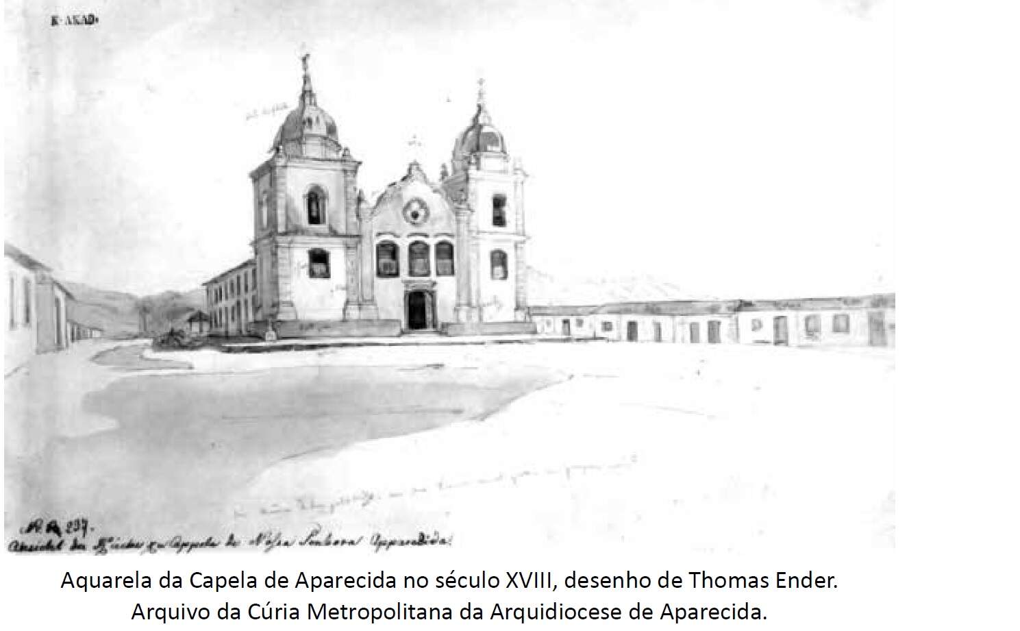 No livro da Editora Santuário chamado “Senhora Aparecida”, da historiadora Teresa Pasin, é relatado que, entre 1817 e 1818, o pintor austríaco Thomas Ender acompanhou a missão científica de Karl Friedrich e Johann Baptist, em uma “Viagem pelo Brasil”. Encantado com a localização, ele fez uma pintura em aquarela homenageando a antiga capela.