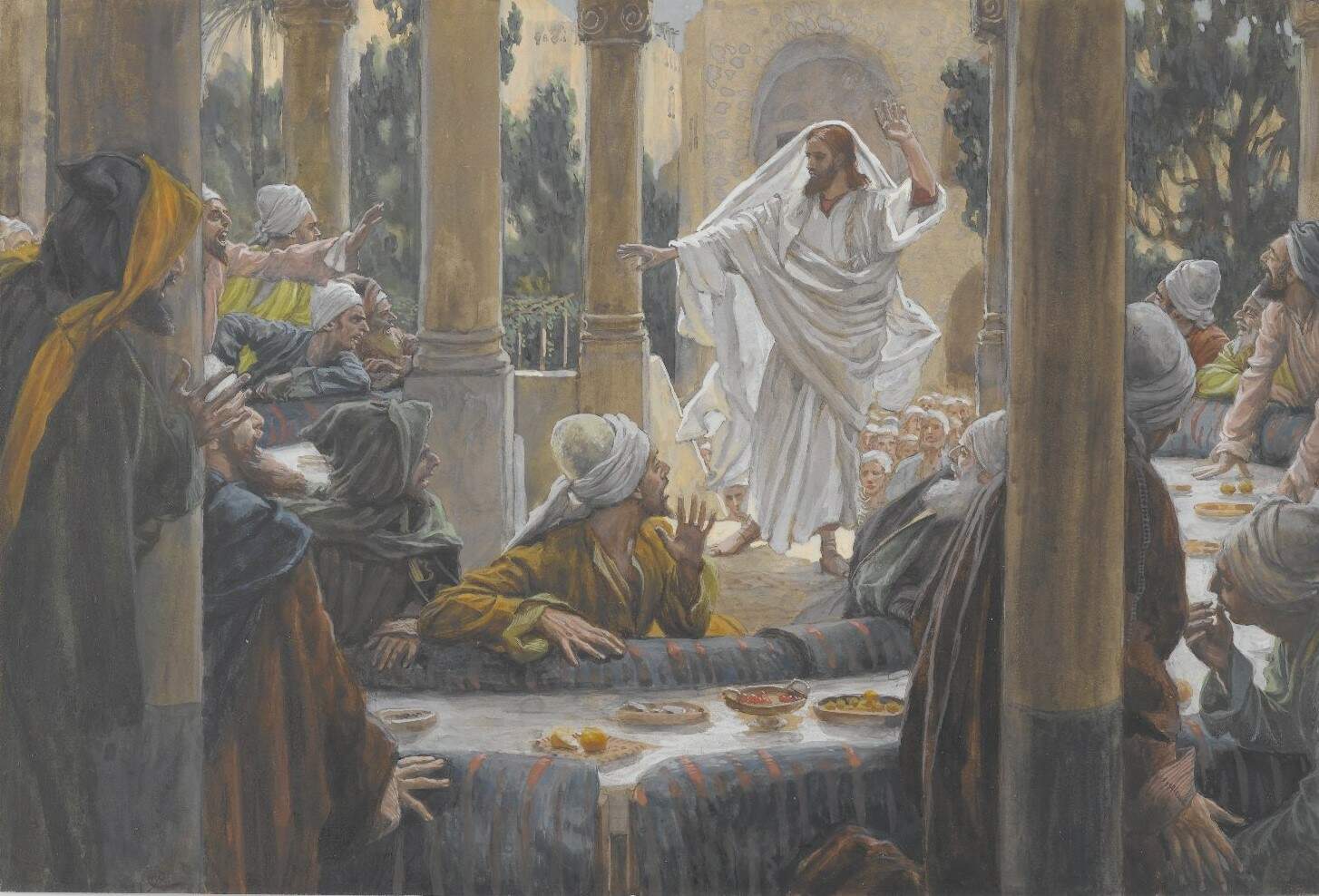“Ai de vós, escribas e fariseus hipócritas! Pagais o dízimo da hortelã, do endro e do cominho e desprezais os preceitos mais importantes da lei: a justiça, a misericórdia, a fidelidade. Eis o que era preciso praticar em primeiro lugar, sem, contudo, deixar o restante. Guias cegos! Filtrais um mosquito e engolis um camelo. Ai de vós, escribas e fariseus hipócritas! Limpais por fora o copo e o prato e por dentro estais cheios de roubo e de intemperança. Fariseu cego! Limpa primeiro o interior do copo e do prato, para que também o que está fora fique limpo” (Mt 23, 23–26)