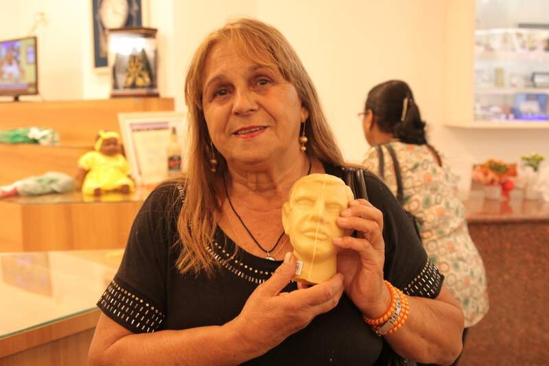 Conceição Rodrigues Braga, que veio ao Santuário com a excursão de Itabirito (MG), entregou na Sala das Promessas uma cabeça de cera para a gradecer a recuperação do filho que há dois anos sofreu um acidente.