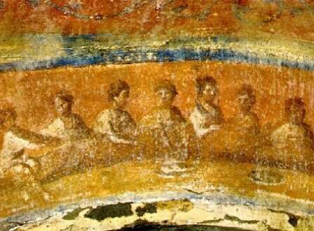Nos primeiros séculos, por conta da perseguição aos cristãos, as representações da Eucaristia eram simbólicas, por meio do peixe, o símbolo de Cristo e o pão, alusão à multiplicação dos pães e à Eucaristia. Essas imagens eram catequéticas e reforçavam a fé oculta dos primeiros a professarem a fé cristã.