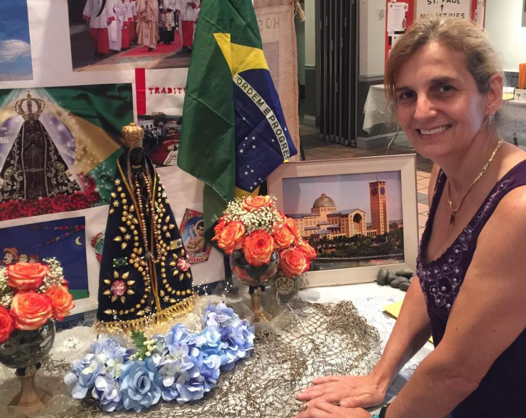 Residente nos Estados Unidos há mais de nove anos, a jornalista e o marido, Valmor Scoz são de Curitiba (PR) e encontraram na igreja uma forma de se aproximar de outros brasileiros que residem na região, minimizar a saudade do Brasil e aumentar a fé. “Eu diria que a fé aumenta na proporção da saudade. Quando comemoramos a Festa de Nossa Senhora Aparecida, eu sinto que minha fé se renova, fortalece. Acredito que ela é meu elo de conexão com Deus, o caminho mais rápido e seguro a Jesus”, partilha.