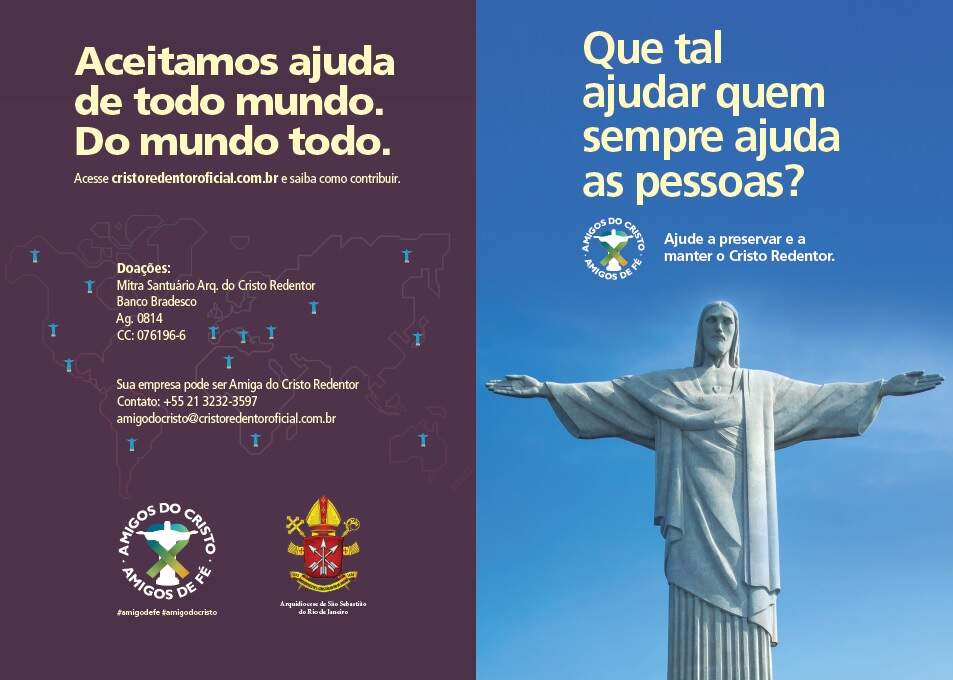 A Arquidiocese do Rio de Janeiro fará o lançamento da campanha “Amigos do Cristo Redentor”, com o objetivo de angariar fundos para continuar a implementar as ações necessárias à conservação do Monumento e ao conforto dos visitantes.