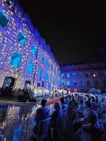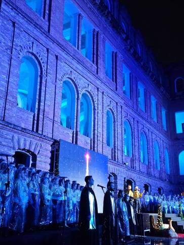 A sétima edição da Cantata de Natal da Arquidiocese de Aparecida realizada na noite desta sexta-feira (19), foi marcada por um espetáculo de fé, música e beleza. Na fachada do Seminário Bom Jesus conhecido por sua bela arquitetura, os coralistas tomaram as janelas para uma apresentação repleta de emoção e muitas luzes.