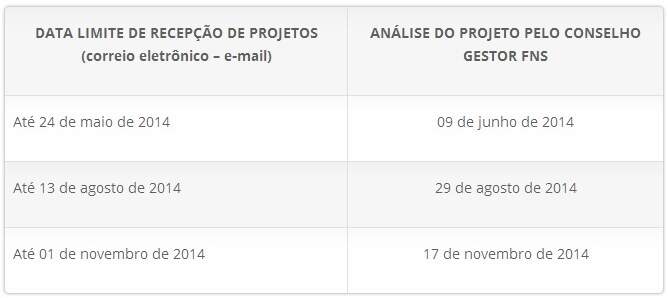 Confira na tabela abaixo as datas para o envio dos projetos.