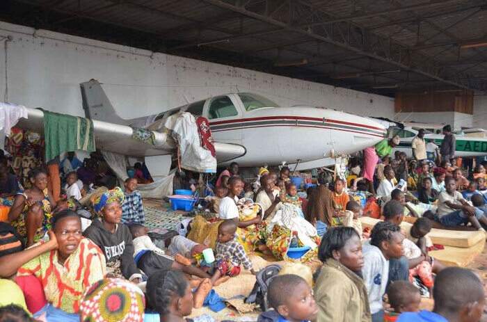 No aeroporto de Bangui, mais de 40 mil pessoas vivem em condições precárias.