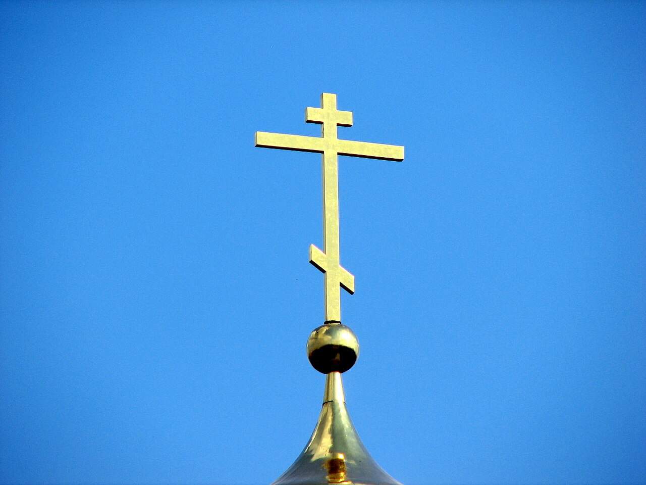 Utilizada na Igreja Russa, a cruz tem oito pontas. Sobre a haste central (vertical) se encontram três travessões horizontais.