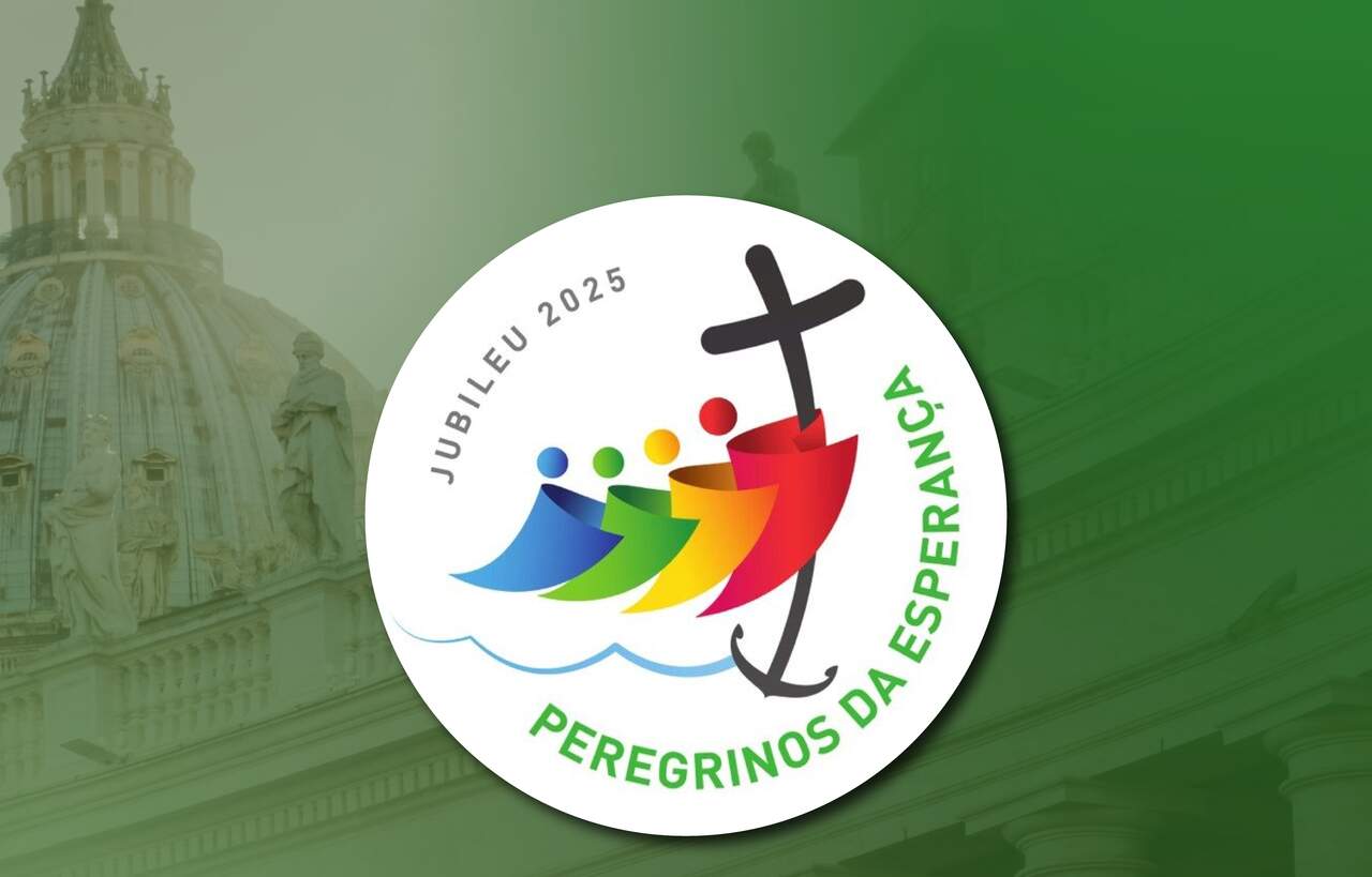 O logotipo do Jubileu 2025 apresenta quatro figuras estilizadas que simbolizam os quatro cantos do mundo, e que estão entrelaçadas, assim, expressando a solidariedade que une todos os povos.