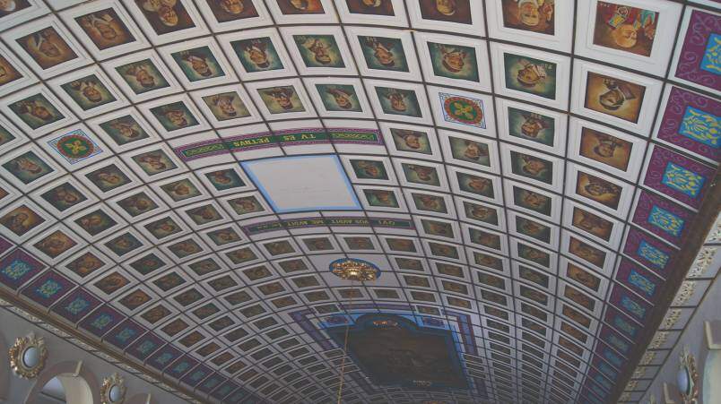 Em Piracaia, porém, a configuração é única no mundo: o teto abobadado da matriz abriga uma sequência de quadros pintados à mão, organizados em fileiras que simbolizam a continuidade da Igreja.
