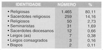 Preparado pelo Conselho Missionário Nacional (COMINA), o cadastro é permanentemente atualizado. Segundo os dados disponíveis, 1.829 missionários brasileiros estudam ou trabalham no exterior. A classificação por gênero confirma a ampla prevalência do sexo feminino na ação ad gentes.