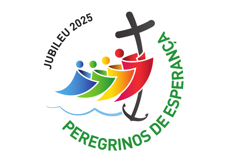 O logotipo escolhido para o Jubileu 2025 apresenta quatro figuras estilizadas que simbolizam toda a humanidade, em diferentes cores, representando os povos do mundo caminhando juntos em fraternidade. Essas figuras estão unidas, com uma delas abraçando a Cruz, que está curvada como um gesto de acolhimento. Essa Cruz, por sua vez, se transforma em uma âncora, um elemento central de esperança.