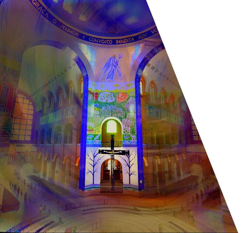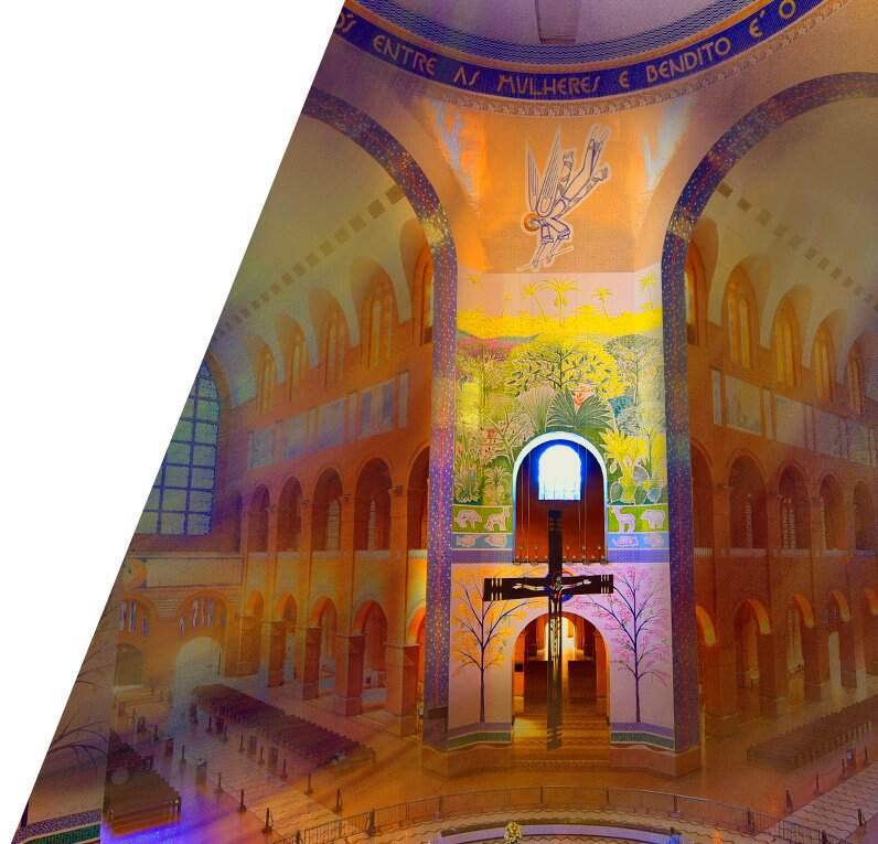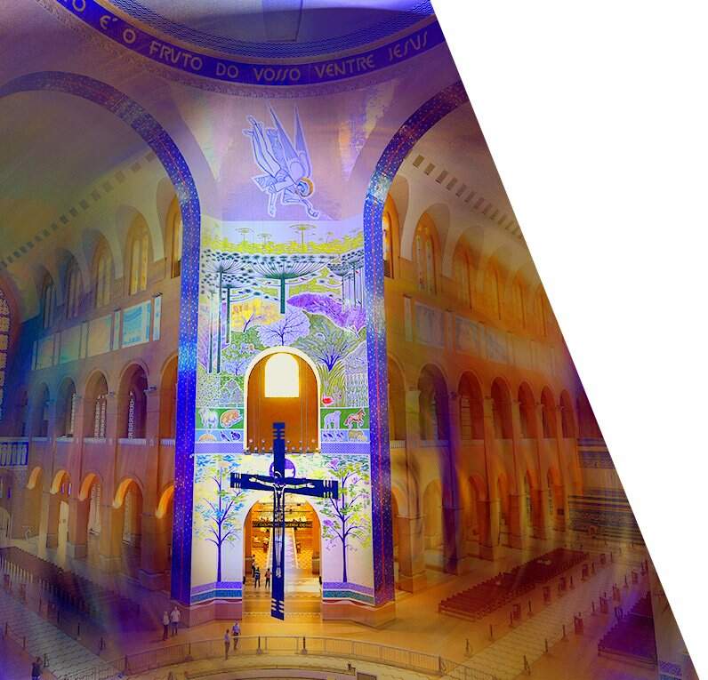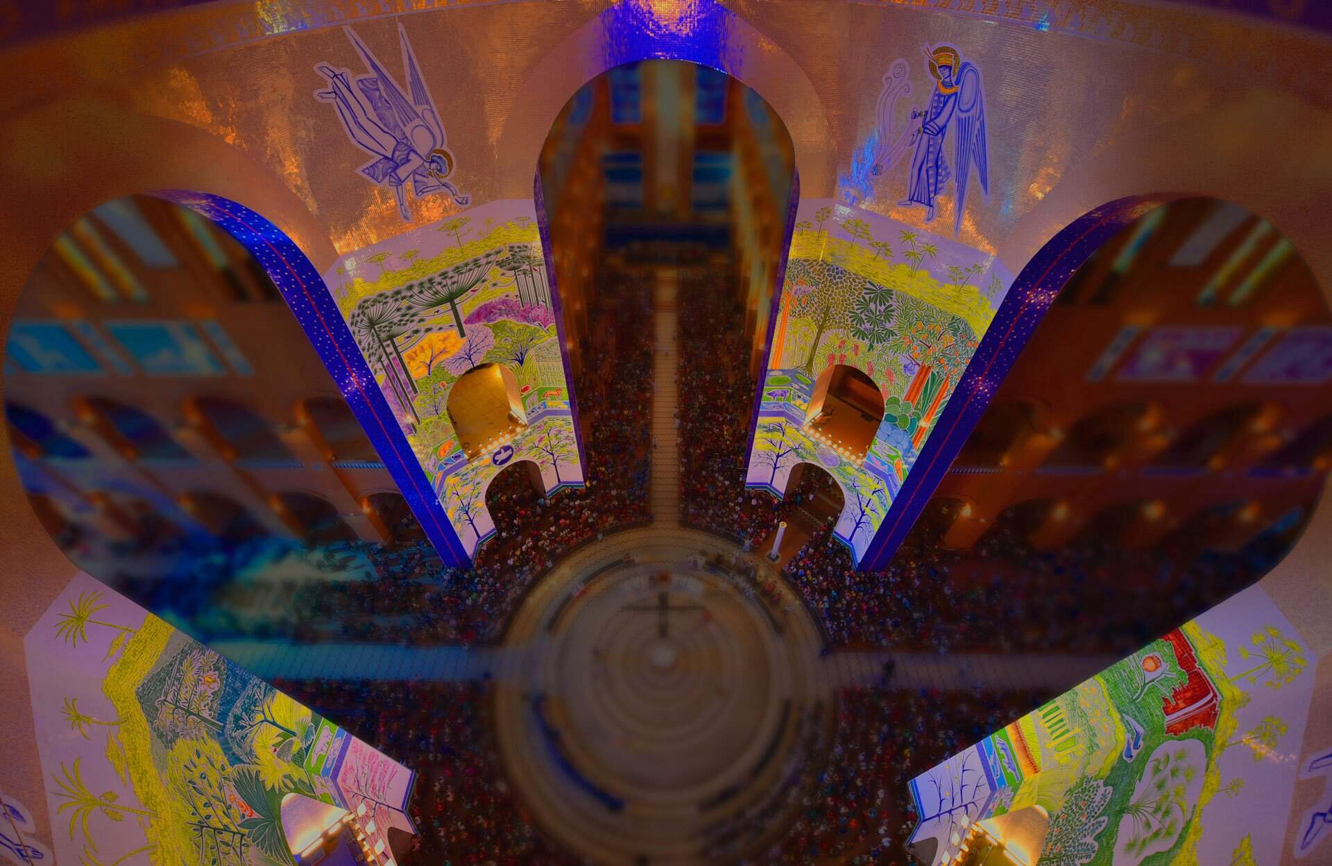 A arte sacra representada no Baldaquino e na Cúpula Central antecipa no tempo presente um vislumbre da Jerusalém Celeste.