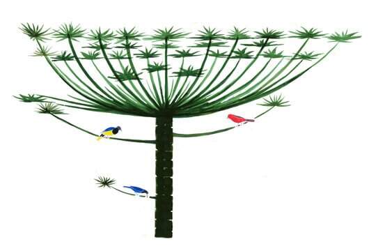 A Mata das Araucárias é presença marcante na obra desse baldaquino. Espécie do bioma Mata Atlântica já ocupou cerca de 2,6% do território nacional e como outras espécies brasileiras vem sendo degradada em função do corte ilegal de árvores. Além dessa belíssima árvore que pode chegar a 30 metros de altura, a obra destaca alguns animais da região Sul do Brasil, onde predomina os biomas Mata Atlântica e Pampa.