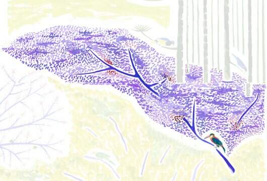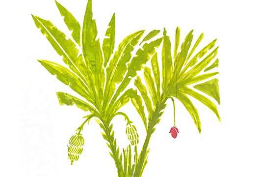 O Baldaquino Nordeste traz a representação da fauna e da flora predominante da região Sudeste, destacando o bioma Mata Atlântica. Sua vegetação é conhecida principalmente por sua exuberância e diversidade. A Palmeira, espécie chave desse bioma, é caracterizada na obra de Pastro. A variedade de cores e elementos demonstram a exuberância da flora e fauna. Saiba mais sobre as espécies: