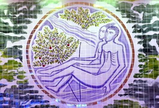 A obra prima deixada pelo artista sacro Cláudio Pastro, falecido em outubro de 2016, deseja provocar o maravilhamento por tudo o que Deus criou e evidenciar a grande Criação que se manifesta para adorar o Senhor no Altar da Consagração.