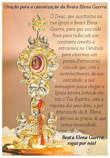 Elena Guerra nasceu em Lucca, na Itália, em 1835, e ficou conhecida como Apóstola da Efusão do Espírito. Ela mantinha contato através de cartas com o Papa Leão XIII, nas quais clamava ao Santo Padre que ele retomasse na Igreja a devoção ao Espírito Santo. Por seu grande amor e devoção ao Espírito Santo, tornou-se intercessora da Renovação Carismática Católica do Brasil. Ela foi beatificada pelo papa João XXIII, em 26 de abril de 1959.