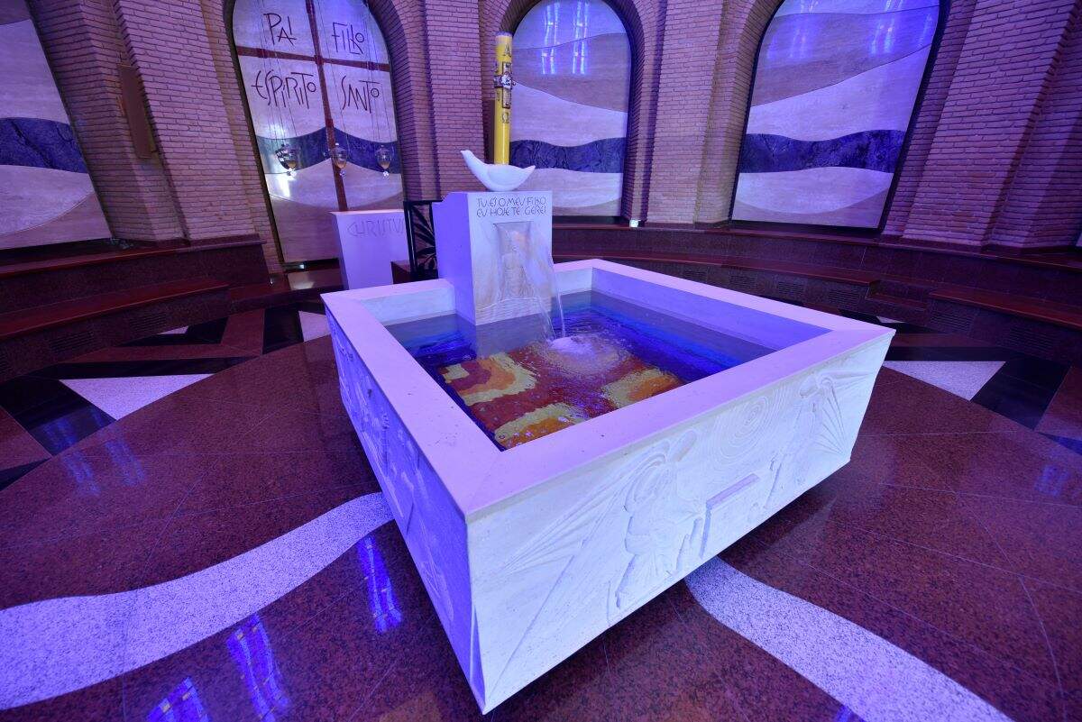 Para concluir, padre Lucas andou pela Capela do Batismo para explicar um pouco dos símbolos que compõem o rito do batizado, como a vela, a pia batismal e o uso da água nas bênçãos.