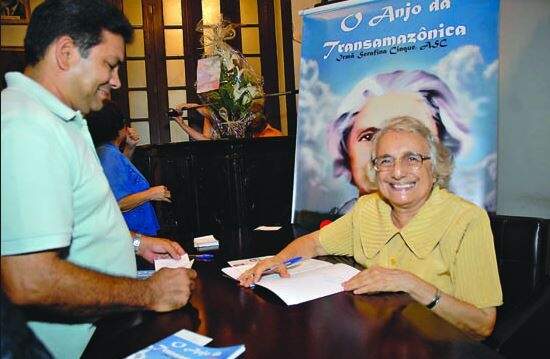 Irmã Marília no lançamento de história em quadrinhos que conta história de Irmã Serafina.