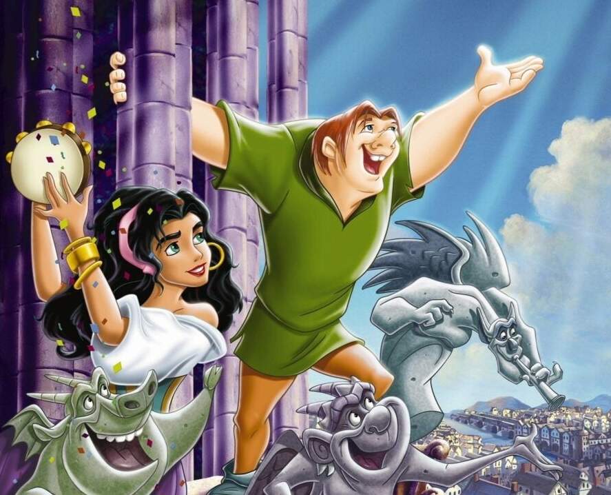 O personagem de Claude Frollo, que permite que o corcunda viva na torre da catedral, traz em suas ações a luta interior entre o desejo e o dever, por causa de sua vocação e posição na sociedade parisiense, enquanto Quasímodo simboliza a compaixão e a pureza, apesar de sua aparência física deformada.