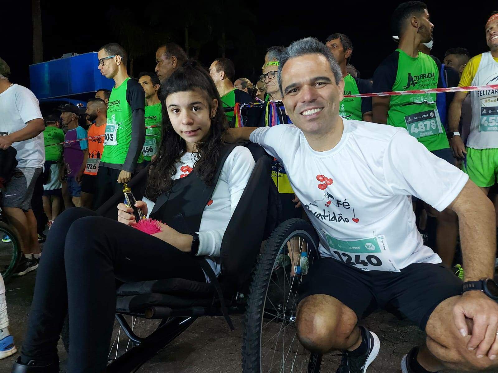Pai e filha participaram juntos da corrida. Alexandre Sueiro e Isabela Sueiro vieram de Ribeirão Pires (SP) para participar pela primeira vez da Corrida Mãe Aparecida. Ele conta que é um presente de Dia dos Pais poder participar junto com sua filha: