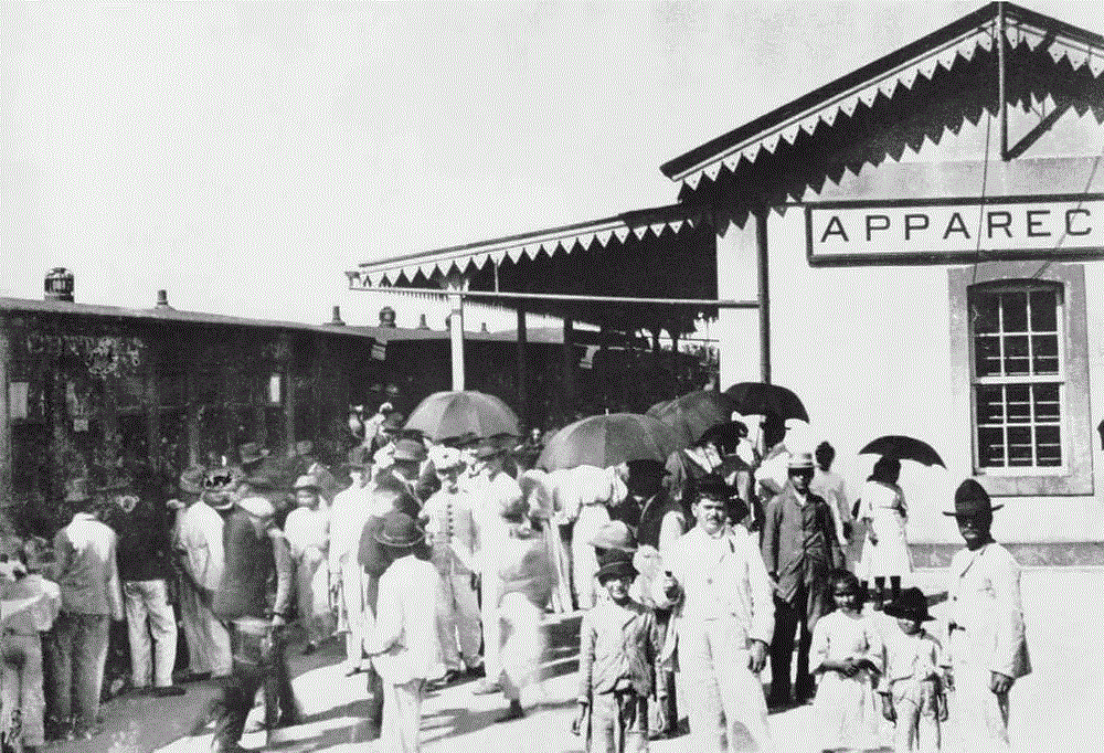 Segundo a estudiosa, o regente Feijó, percebendo a importância de uma estrada de ferro, assinou um decreto em 31 de outubro de 1835. A estrada que ligava São Paulo ao Rio de Janeiro teve sua conclusão em 1877, e a Estação de Aparecida foi inaugurada em 3 de julho de 1877.