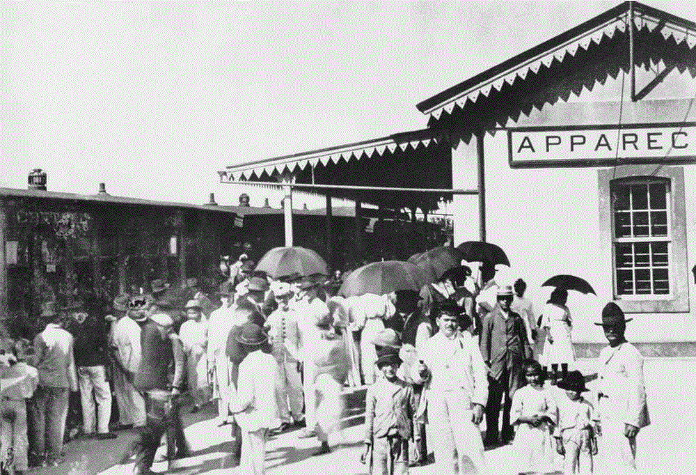 Atualmente, podemos ver muitas romarias chegando de diferentes partes do país de ônibus, o que já é uma tradição no Santuário Nacional. Mas, em meados do século XIX, a maneira de chegar até a Basílica Histórica era por meio da Estrada de Ferro Central do Brasil, inaugurada no ano de 1877.