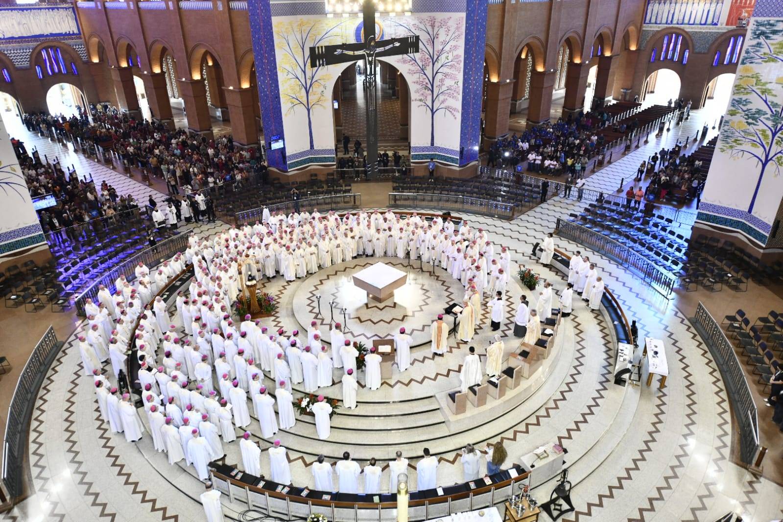 A celebração ocorreu às 7h, com Laudes, com os membros da presidência da Conferência e os bispos presidentes dos regionais concelebrando a missa. Após dez dias de debates, votações e partilhas, o episcopado brasileiro apresentou ao altar os trabalhos realizados e confiando na intercessão da bem-aventurada Virgem Maria, Senhora Aparecida.