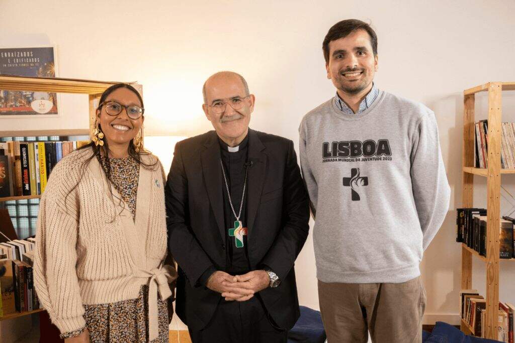 Sara de Fátima Rahemane, do Comitê Organizador Local (COL) da JMJ Lisboa 2023; e David Moura, do Comité Organizador Diocesano (COD) de Vila Real, participaram da primeira conversa com dom Tolentino Mendonça e o tema foi pela espera pela JMJ e a mudança que os jovens tem capacidade de promover.