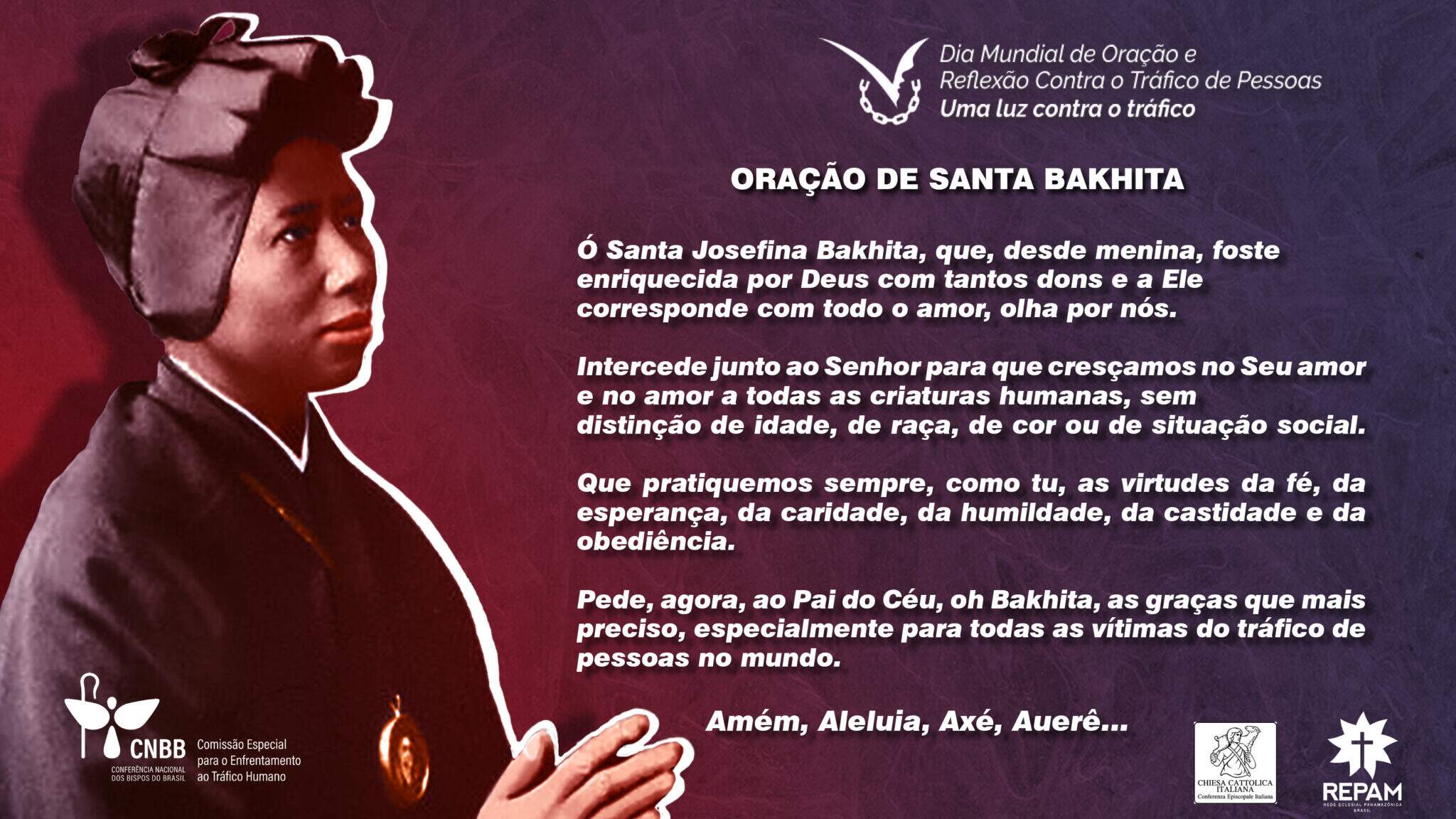 O dia 8 de fevereiro foi instituído pelo Papa Francisco como memória litúrgica e de compromisso, inspirado por Santa Bakhita, para o Dia Mundial de Oração e Reflexão contra o Tráfico de Pessoas, em sua 10ª edição. Este ano, a edição dá continuidade ao tema de 2023, reforçando a reflexão e incentivando para que todos continuem a “Caminhar com dignidade: ESCUTAR, SONHAR e AGIR”.