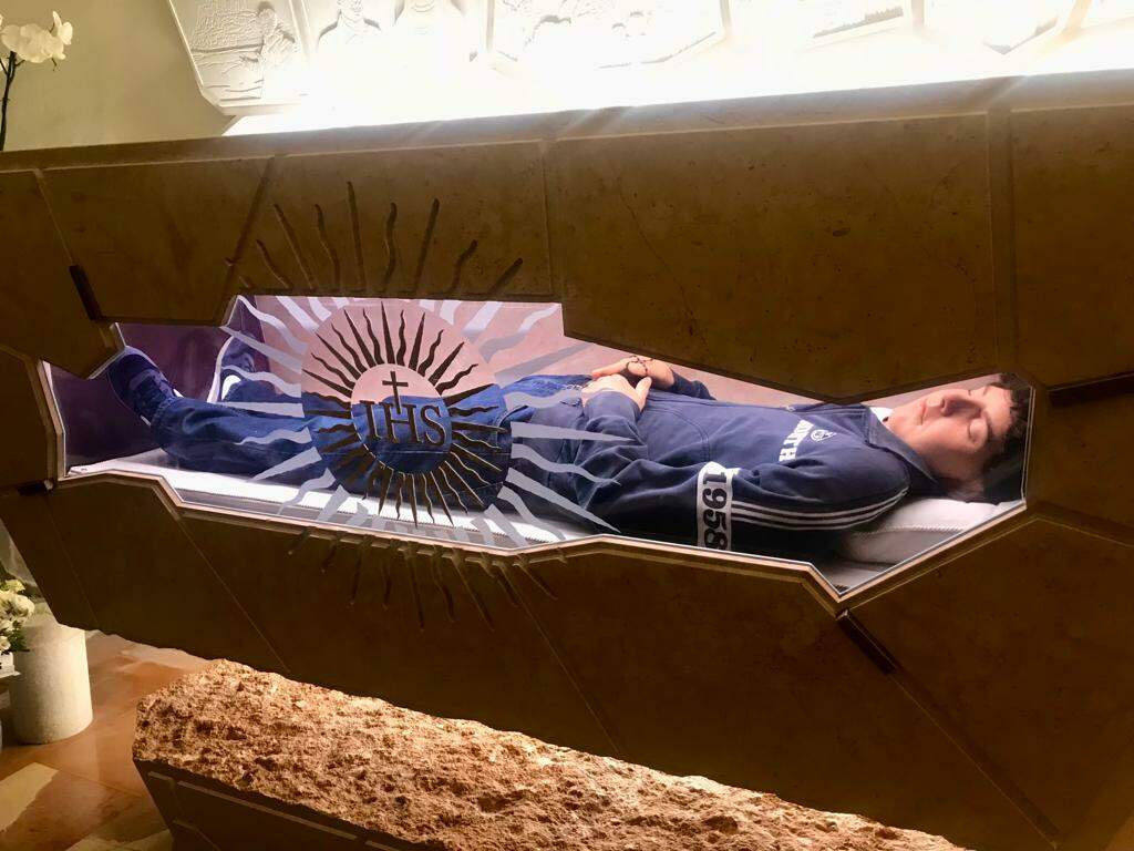 Atualmente o corpo de Carlo está exposto na Igreja de Santa Maria Maggiore, em Assis, na Itália.