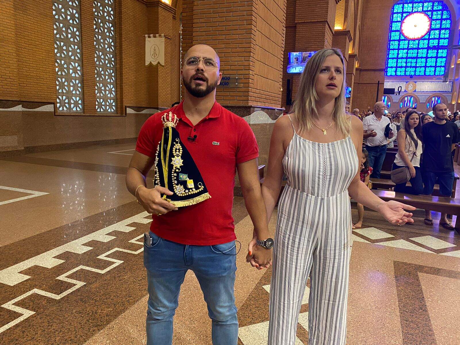 O brasileiro, já com a imagem de Nossa Senhora em mãos, recebeu uma surpresa no lugar que foi pano de fundo para tantos momentos importantes em sua vida: o Santuário Nacional.