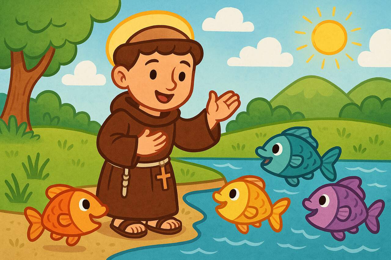 O milagre do sermão aos peixes é um fato muito atraente aos pequenos que pode ser contado de forma lúdica para mostrar que ele amava Jesus e queria que todos os conhecessem.
