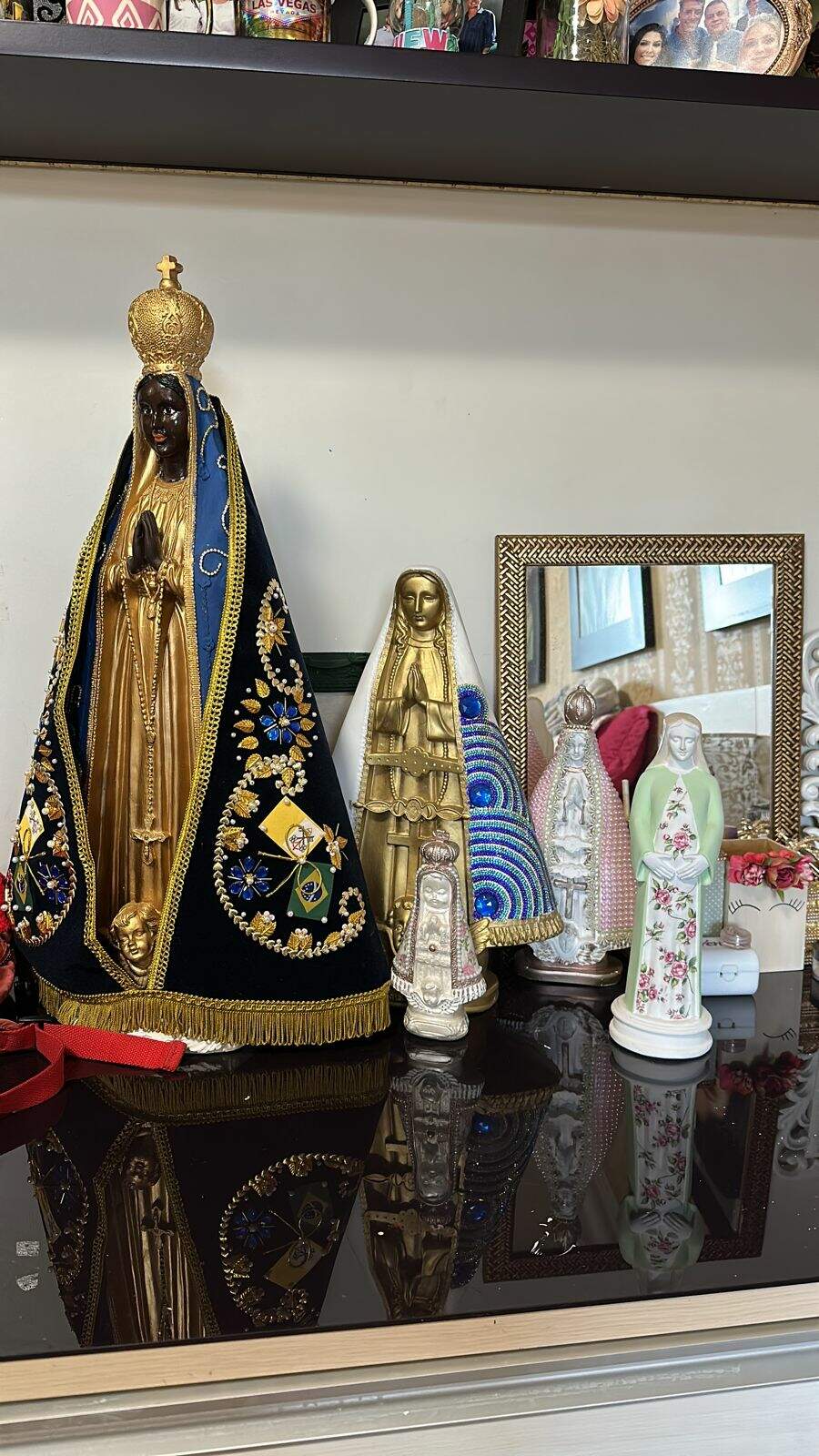 “Em dezembro, no último ciclo do ano, minha menstruação atrasou e a expectativa cresceu. Então, no dia 27 de dezembro, parei à frente das 4 imagens de Nossa Senhora Aparecida e de uma imagem de Nossa Senhora Grávida que eu estava pintando. Pedi à Mãezinha que me desse um sinal, rezei e fui dormir. Na mesma noite, sonhei que estava dentro da Basílica de Nossa Senhora Aparecida, exatamente no lugar em que fiz o pedido, e estava muito feliz.