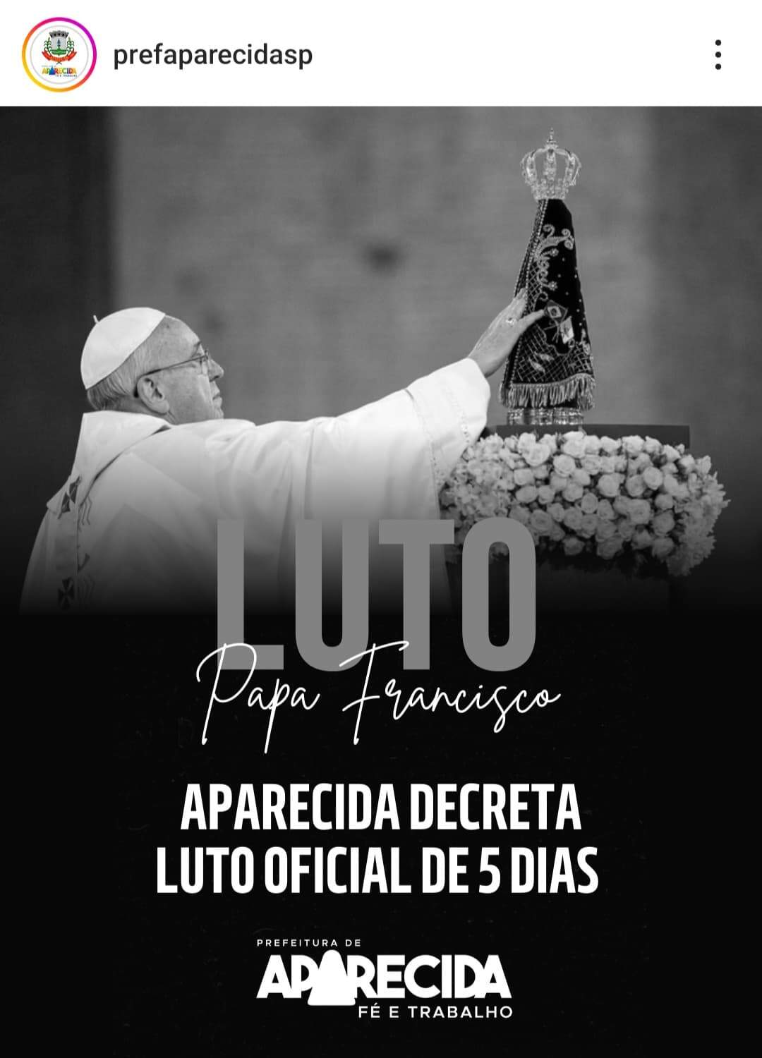 Na cidade de Aparecida (SP), o prefeito José Luiz Rodrigues, conhecido como Zé Louquinho, publicou um vídeo em suas redes sociais, ainda na segunda-feira, com o anúncio do decreto de luto oficial no município.