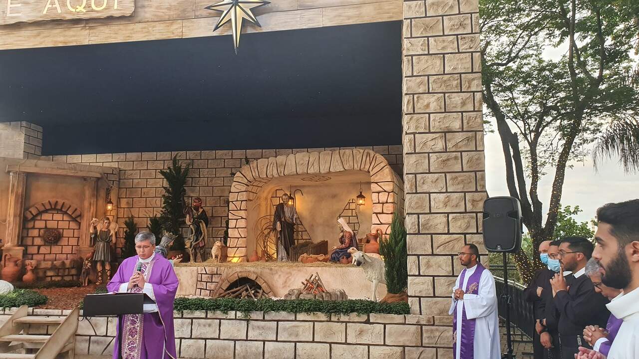 “Aqui é Belém, aqui nasce a esperança. Com a benção deste presépio, somos introduzidos na feliz expectativa do nascimento de Jesus”, disse Pe. Luiz Cláudio na celebração.