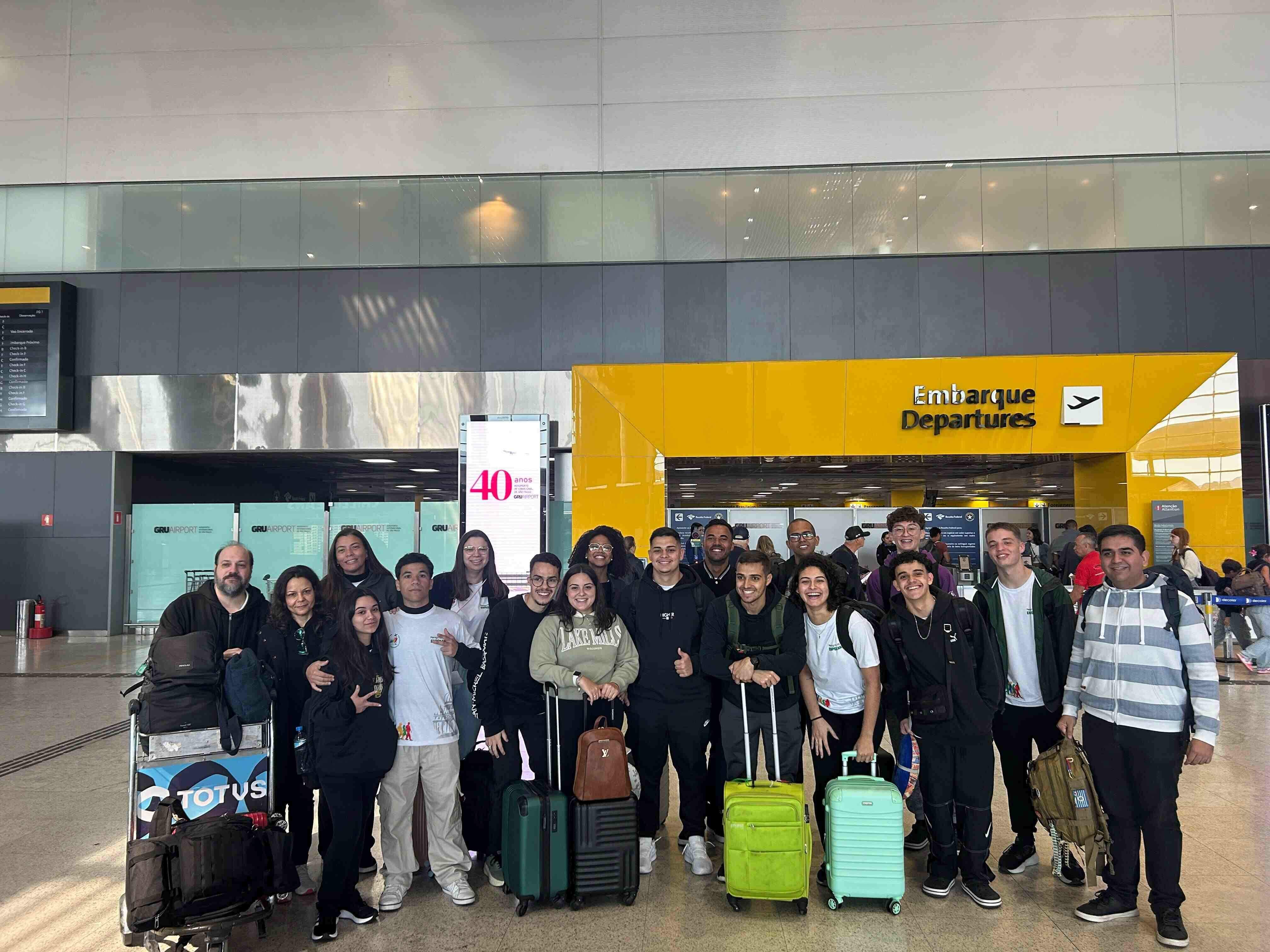 Jovens momentos antes do embarque para Roma