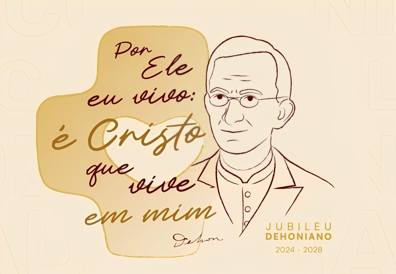 Criada pela designer Maria Eduarda Oliveira Batista, a identidade visual do Jubileu Dehoniano une o centenário de morte (1925-2025) e os 150 anos de fundação da Congregação (1878-2028).