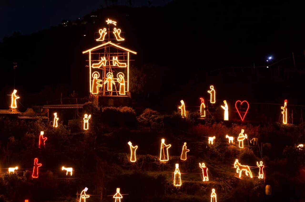 O presépio iluminado de Manarola é uma criação do ex-ferroviário italiano Mário Andreoli, que em 1961 recebeu de seu pai uma missão de colocar uma cruz no alto da colina de Tre Croci, em um terreno de sua propriedade. Além da cruz, Mário teve a ideia de iluminar o local e criar um presépio, acrescentando novas figuras a cada ano, feitas com material reciclado destinado ao aterro sanitário.