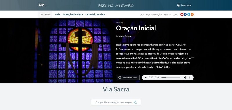Pensando na tradição e também na impossibilidade de muitos fiéis participarem de uma Via-Sacra pessoalmente, o A12 preparou uma página especial onde o devoto é convidado a percorrer os passos da Paixão e morte de Jesus.